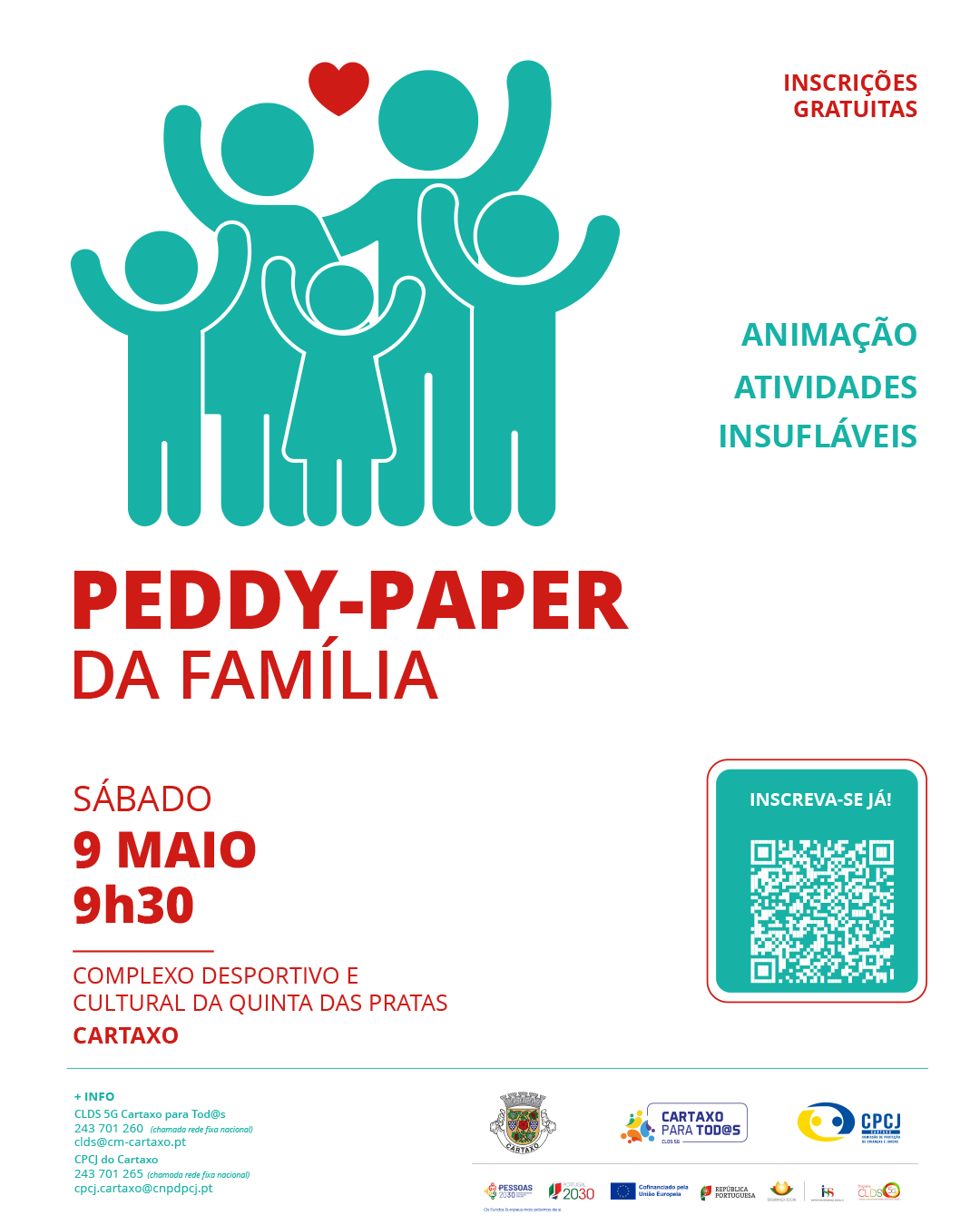 Esta atividade é organizada pela Câmara Municipal do Cartaxo, CPCJ Cartaxo e CLDS - Cartaxo para Tod@s - Programa CLDS - Contratos Locais de Desenvolvimento Social. Saiba mais em cm-cartaxo.pt