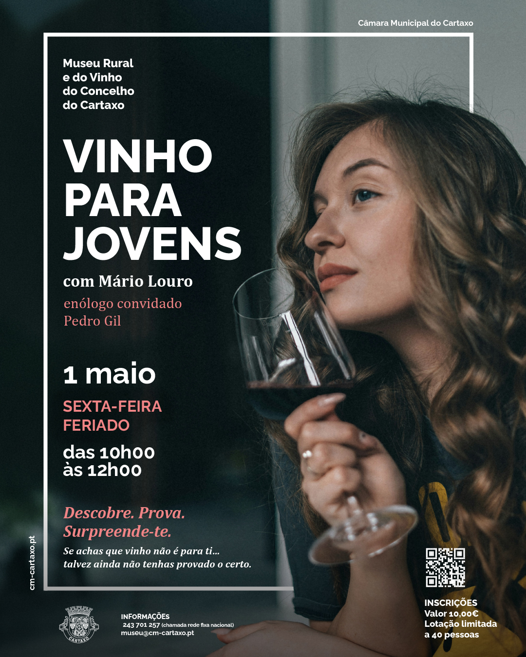 No dia 1 de maio, feriado nacional, o Museu Rural e do Vinho do Concelho do Cartaxo vai receber o enólogo Mário Louro para uma prova conduzida de vinhos que tem como tema - Vinho para Jovens. O enólogo Pedro Gil será o Enólogo Convidado da Prova que decorre no âmbito do programa da Festa do Vinho do Cartaxo 2026.