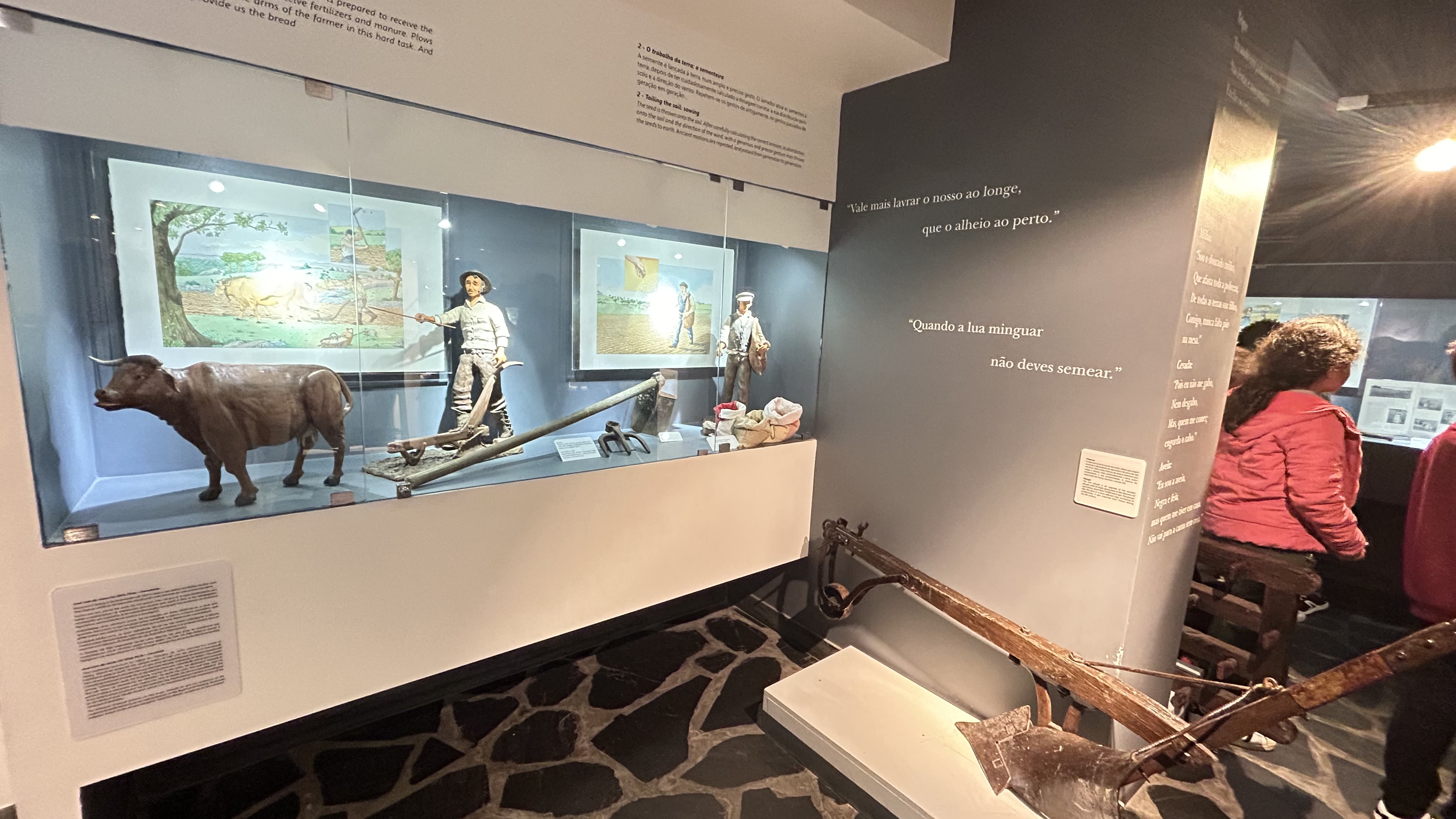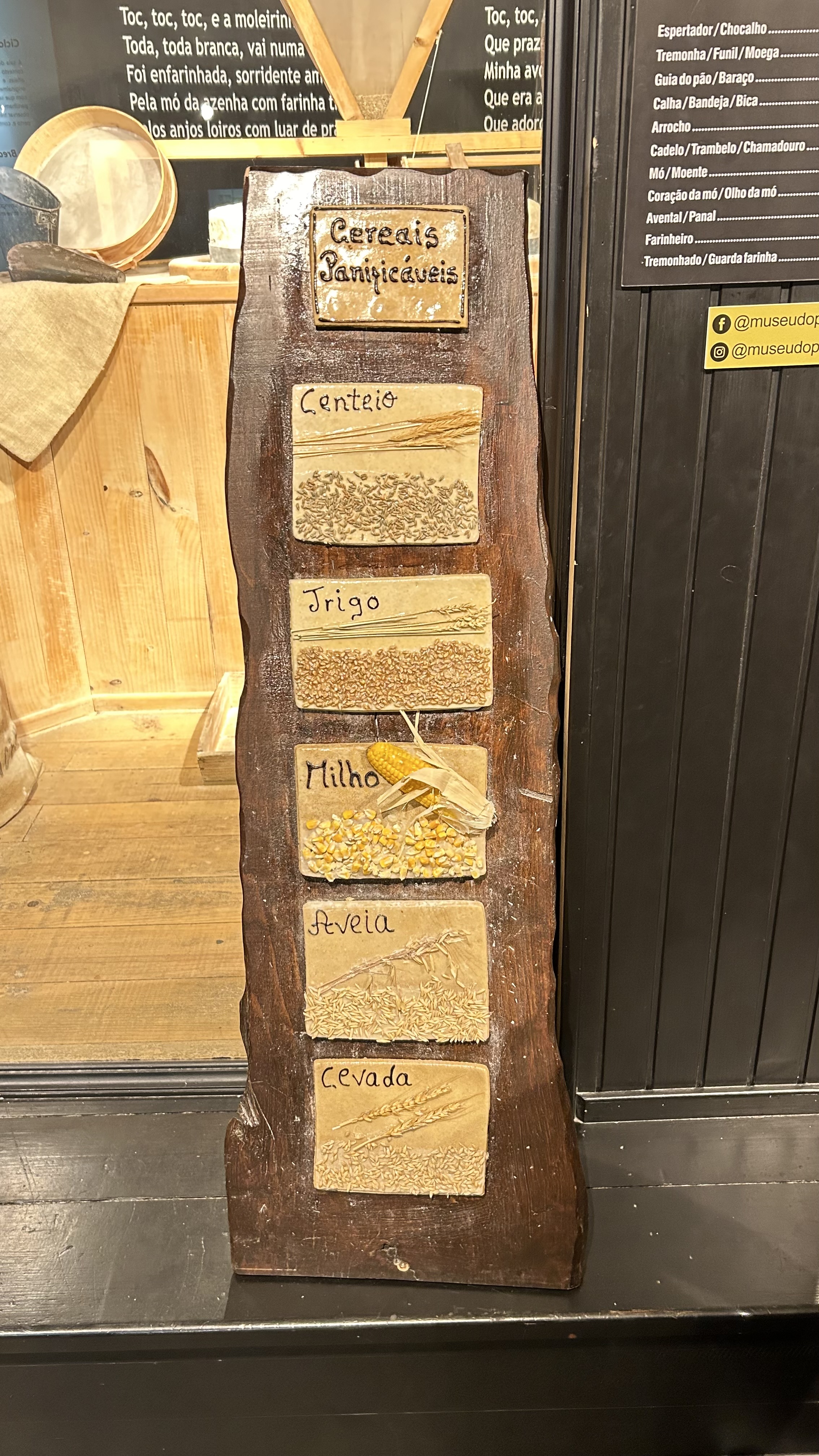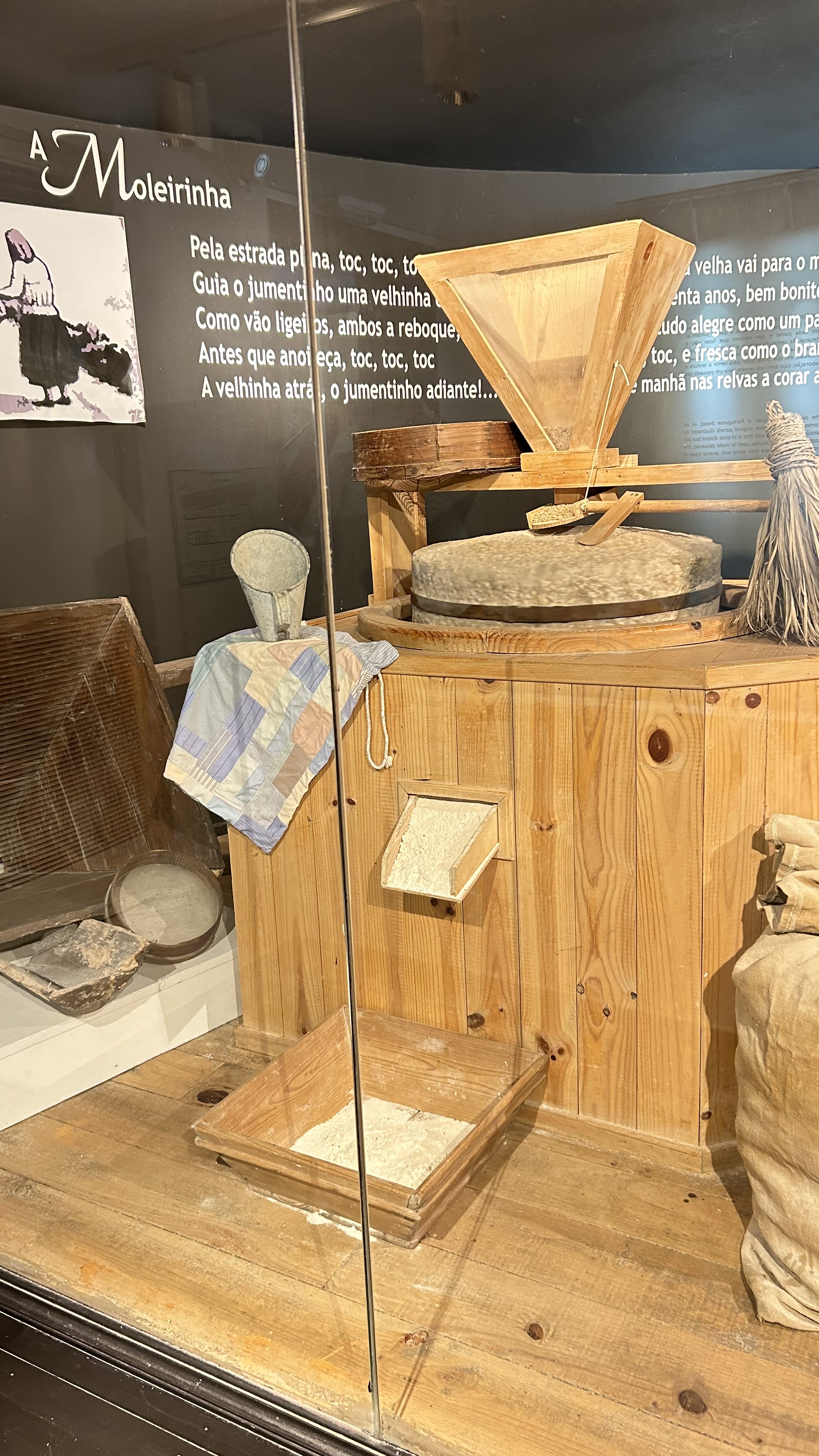 No museu do pão, foi possível explorar o antigo ciclo do pão português, exposições de utensílios relacionados à produção do pão, com cesta de padeira, bicicletas, balanças, etc… e realizar uma viagem imaginária ao passado do pão, repleta de movimento, luz, cor e fantasia através do mundo mágico dos Hérmios, gnomos de uma tribo.