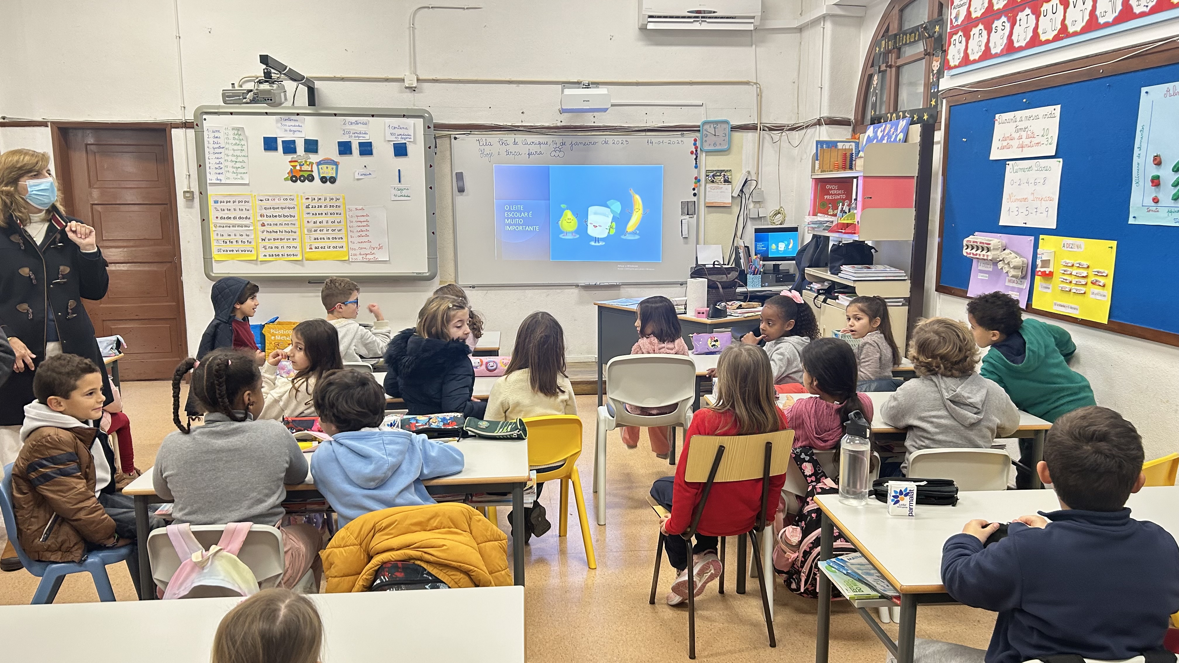 O dia começou com uma sessão de sensibilização com um vídeo explicativo, onde as turmas tiveram a oportunidade de aprender mais sobre os benefícios do consumo de leite e derivados, como iogurte e queijo. Durante a sessão, os alunos ficaram a conhecer o papel essencial do leite na sua dieta, como fonte de cálcio, essencial para o desenvolvimento saudável dos ossos, dentes, além de ser rico em proteínas, vitaminas e minerais que ajudam no crescimento. A sessão gerou entusiasmo entre os mais pequenos, que participaram ativamente com perguntas e reflexões.